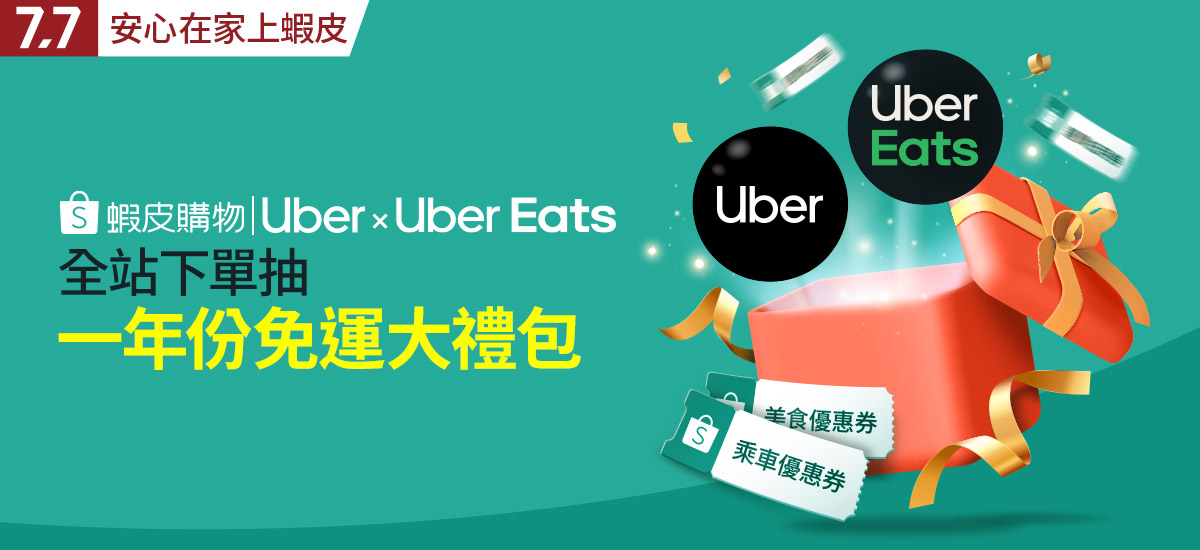 蝦皮XUber、Uber Eats獨家合作|下單抽一年份免運大禮包